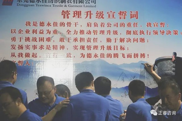 德永佳公司各部門負(fù)責(zé)人在誓詞前簽名,管理升級(jí)正式拉開帷幕!